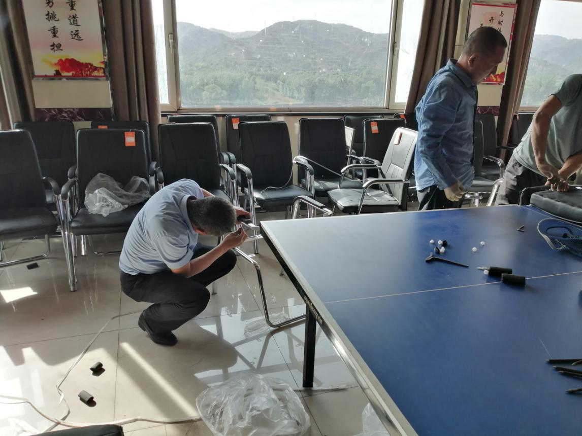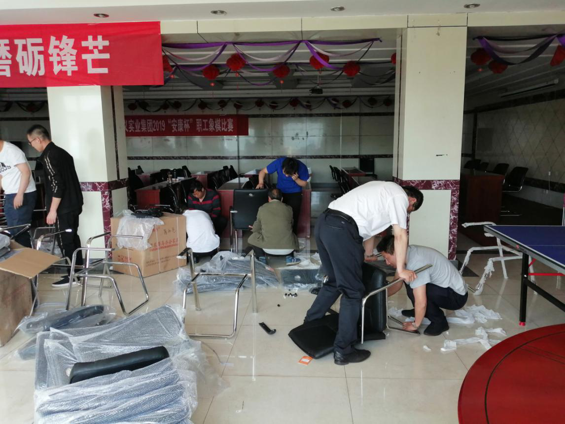 2019年5月19日下午,礦長(zhǎng)梁映章帶領(lǐng)技術(shù)、地測(cè)、通風(fēng)科人員,在五層會(huì)議室組裝會(huì)議座椅,大家有說(shuō)有笑、干的熱火朝天,標(biāo)準(zhǔn)的------快樂(lè)工作現(xiàn)場(chǎng)。