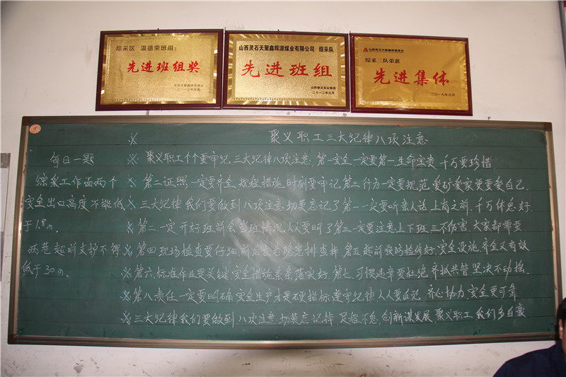 在鑫輝源煤業(yè)綜采二隊班前會上,現(xiàn)場員工精神抖擻,秩序井然,隊長按照班前會程序,逐項進(jìn)行主持。班前點名聲音洪亮,確認(rèn)職工精神飽滿,狀態(tài)良好。班前會緊貼現(xiàn)場生產(chǎn)實際,總結(jié)前一天工作開展情況及存在的不足,對上一班“每日一題”所學(xué)內(nèi)容,進(jìn)行現(xiàn)場隨機(jī)抽對口崗位人員提問,同時部置了當(dāng)天工作任務(wù),特別強(qiáng)調(diào)了要提高安全意識,工作過程中存在的安全隱患要及時整改,杜絕習(xí)慣性違章,嚴(yán)格佩戴防護(hù)用品,保持良好的精神狀態(tài)。綜采二隊出色的表現(xiàn)贏得了與會人員的一致好評。