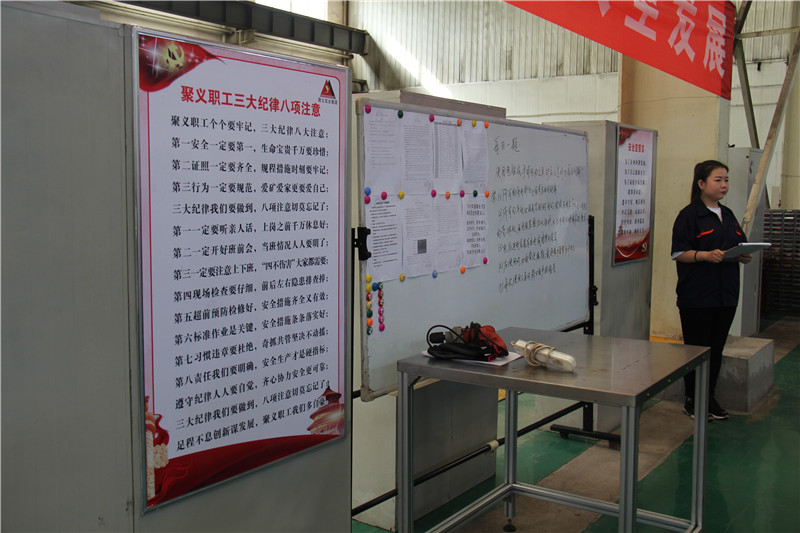 通過此次班前會觀摩活動,聚義集團(tuán)及各子公司“安全生產(chǎn)月”活動正式啟動,集團(tuán)公司、各子公司將采用多種方式,加強(qiáng)安全生產(chǎn)工作的決策部署,突出安全發(fā)展理念,深化安全紅線意識,宣傳安全生產(chǎn)方針政策和法律法規(guī),制定活動方案,加強(qiáng)督促指導(dǎo),層層抓好落實,確保“安全生產(chǎn)月”各項活動圓滿完成。