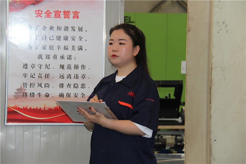 集團(tuán)總經(jīng)理王衛(wèi)軍、安全副總陳輝、工會主席朱明星等出席活動,各子公司主要領(lǐng)導(dǎo)及安全負(fù)責(zé)人參加了活動。在英瑞克公司班前會上,大家觀摩了班前會的整個流程,依次進(jìn)行了班前點名、“一日一題”授課、安全宣誓等環(huán)節(jié),英瑞克車間主任陳學(xué)敏安排工作任務(wù)詳細(xì)明了、具體到人;職工精神狀態(tài)飽滿、回答問題聲音洪亮。整場班前會規(guī)范有序、會風(fēng)良好。