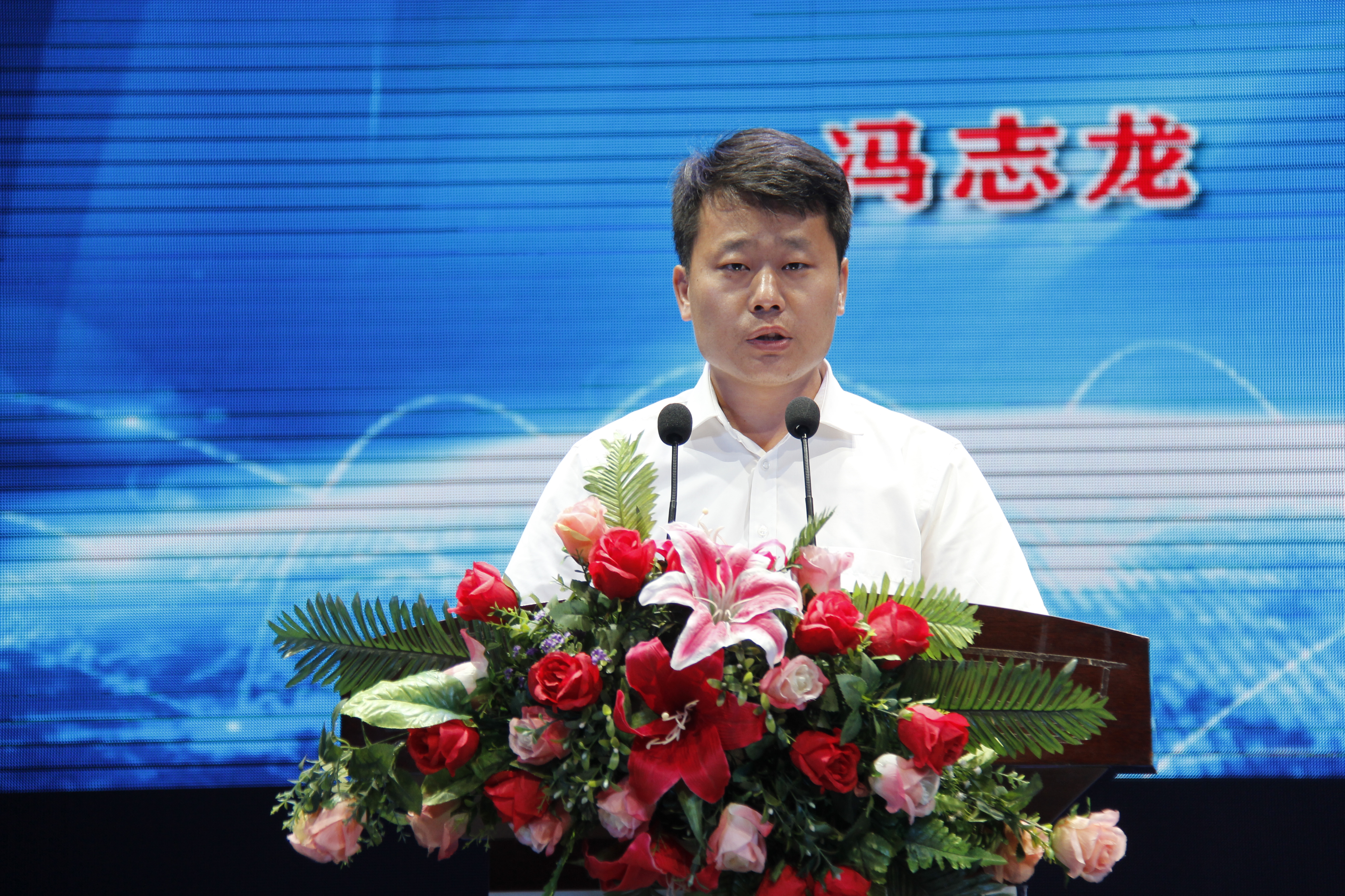 (圖為:股份洗煤廠經(jīng)理馮志龍作表態(tài)發(fā)言)